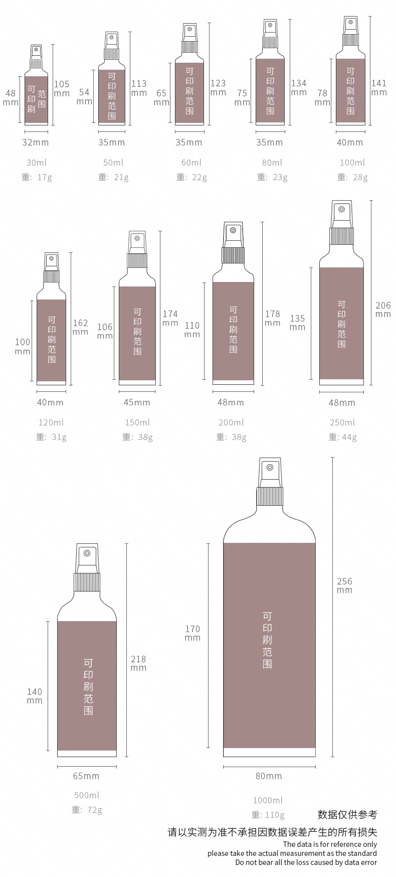 30ml 50ml 100ml 120ml 150ml 250ml PPスプレー付きアルミボトル